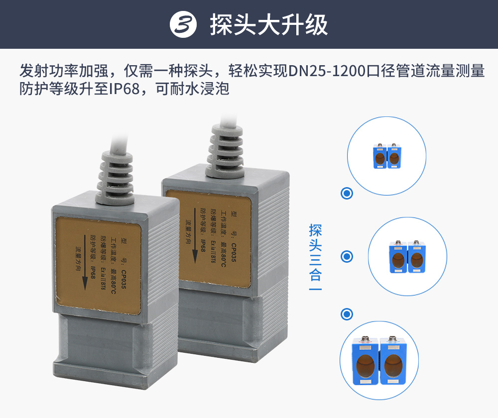 聯測超聲波流量計適合相對純凈液體流量的管外測量,尤其是在水流量測量、在工業循環水、空調制冷循環水、原水、高壓水、自來水,污水排放管等廣泛應用。