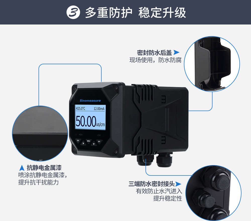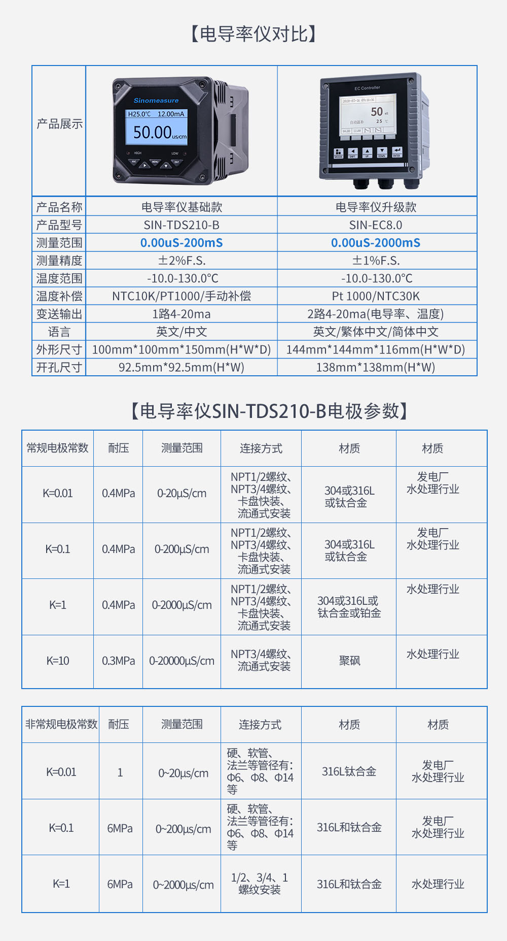 聯測SIN-TDS210工業電導率儀表,可對各種工業用水的電導率(TDS)值進行連續測量和控制,本裝置廣泛應用于科學實驗裝備、化工、制藥、環保、冶金、造紙、食品、飲料及供水等行業。根據水工業的環境和特點結合國際供電標準,考慮了特殊環境的電氣設計規范,增加了220VAC供電