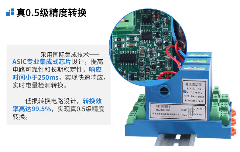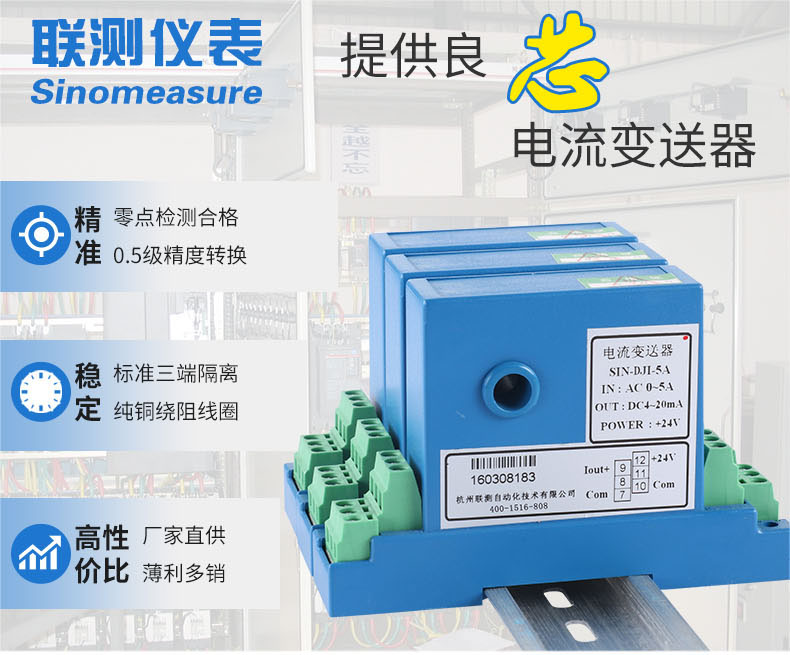 電流變送器可以直接將被測主回路交流電流或者直流電流轉換成按線性比例輸出的DC4~20mA(通過250Ω 電阻轉換DC 1~5V或通過500Ω電阻 轉換DC2~10V)恒流環標準信號,連續輸送到接收裝置(計算機或顯示儀表)。