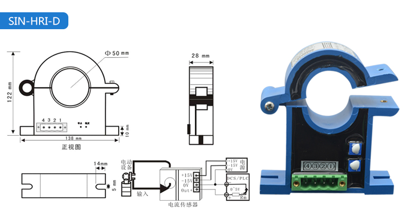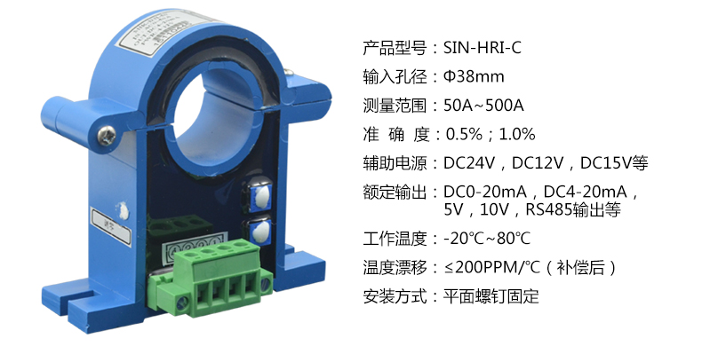 電流變送器可以直接將被測主回路交流電流或者直流電流轉換成按線性比例輸出的DC4~20mA(通過250Ω 電阻轉換DC 1~5V或通過500Ω電阻 轉換DC2~10V)恒流環標準信號,連續輸送到接收裝置(計算機或顯示儀表)。
