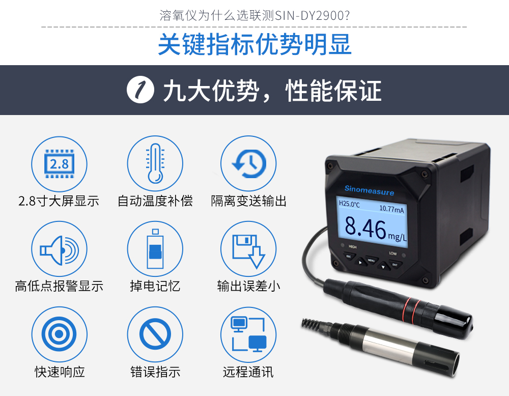 聯測SIN-DM2800工業在線溶氧儀是工業溶氧儀的智能化升級產品,可對污水溶氧值進行連續測量和控制,適用于污水處理,氧化溝,生化池,曝氣池等領域,適合環保污水等行業大量使用。