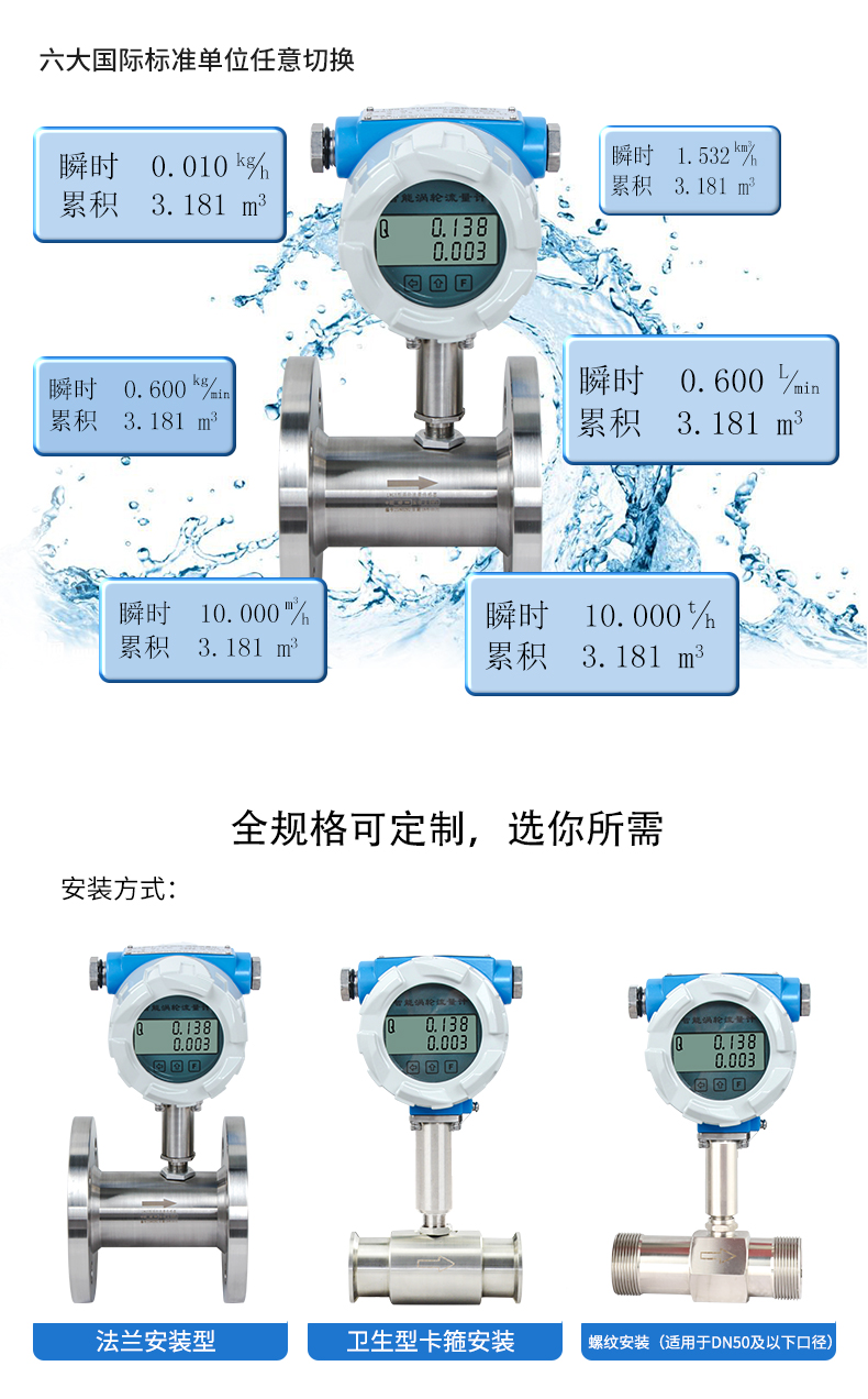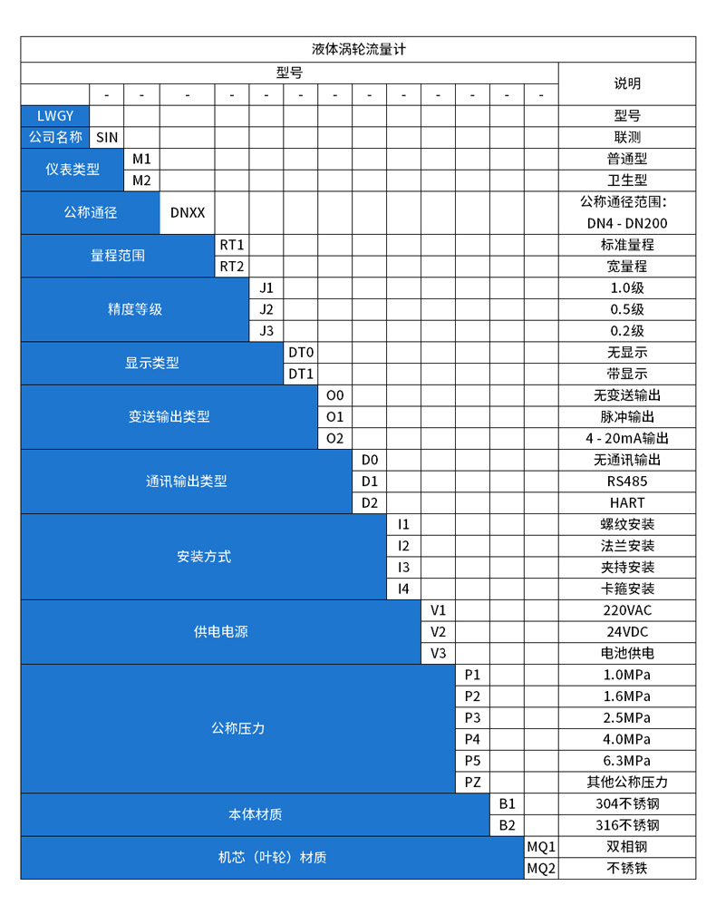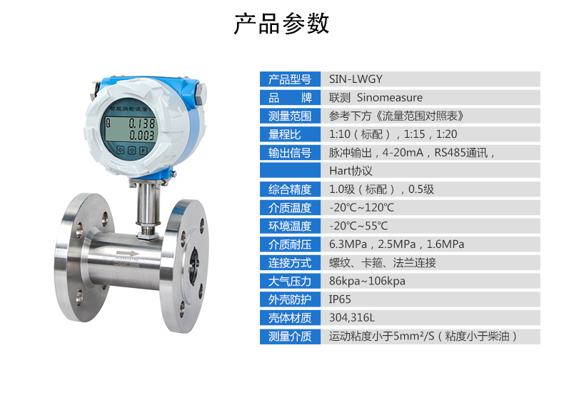 聯測LWGY-SIN液體渦輪流量計是一種速度式儀表,它具有準確度高、重復性好、結構簡單、壓力損失小、維修方便等優點,用于測量封閉管道中低粘度液體的體積流量。