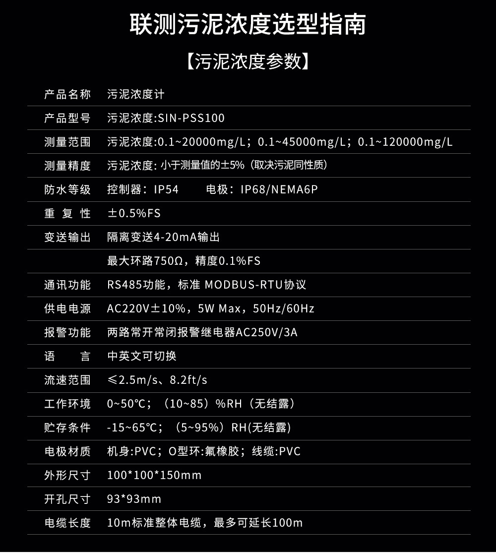 SIN-PSS100傳感器基于組合紅外吸收散射光線法,應用ISO7027方法可以連續測定污泥濃度。按照ISO7027紅外雙散射光線技術不受色度影響測定污泥濃度值。根據使用環境可以選配帶自清洗功能。數據穩定,性能可靠;內設自診功能,保證數據準確;安裝和校正簡單。