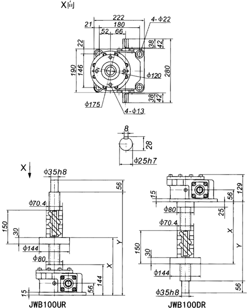 JWB100絲桿升降機(jī)|JWB100滾珠絲桿升降機(jī)-JWB100滾珠絲杠升降機(jī)結(jié)構(gòu)形式及安裝尺寸-海洋傳動(dòng)
