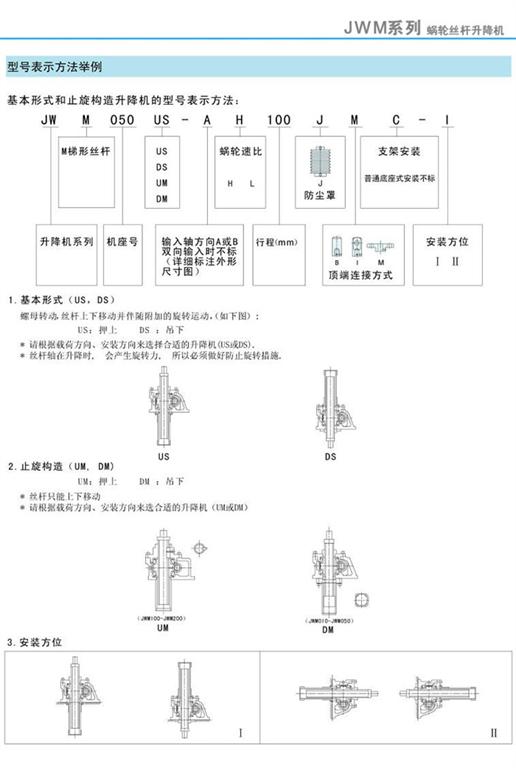 JWM絲桿升降機基本形式、止旋構造及型號表示方法