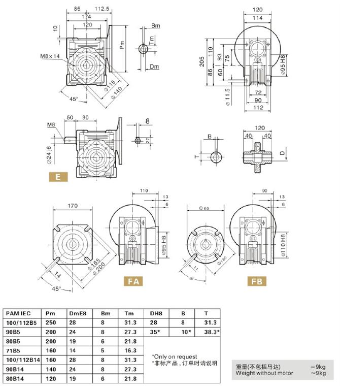 NRV減速機帶輸入軸式 NMRV減速機帶輸入法蘭式(配合電機使用)